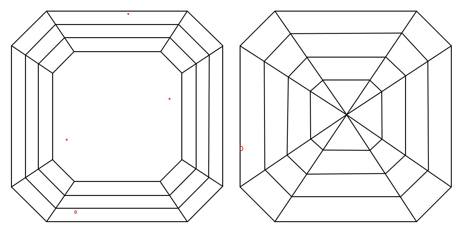 Sometimes known as the square emerald cut, Asscher cuts are square step-cut diamonds. They have higher crown angles and a smaller table, creating a geometric, Art Deco look. Ada Diamonds screens Asscher cut diamonds for light leakage and empty facets.