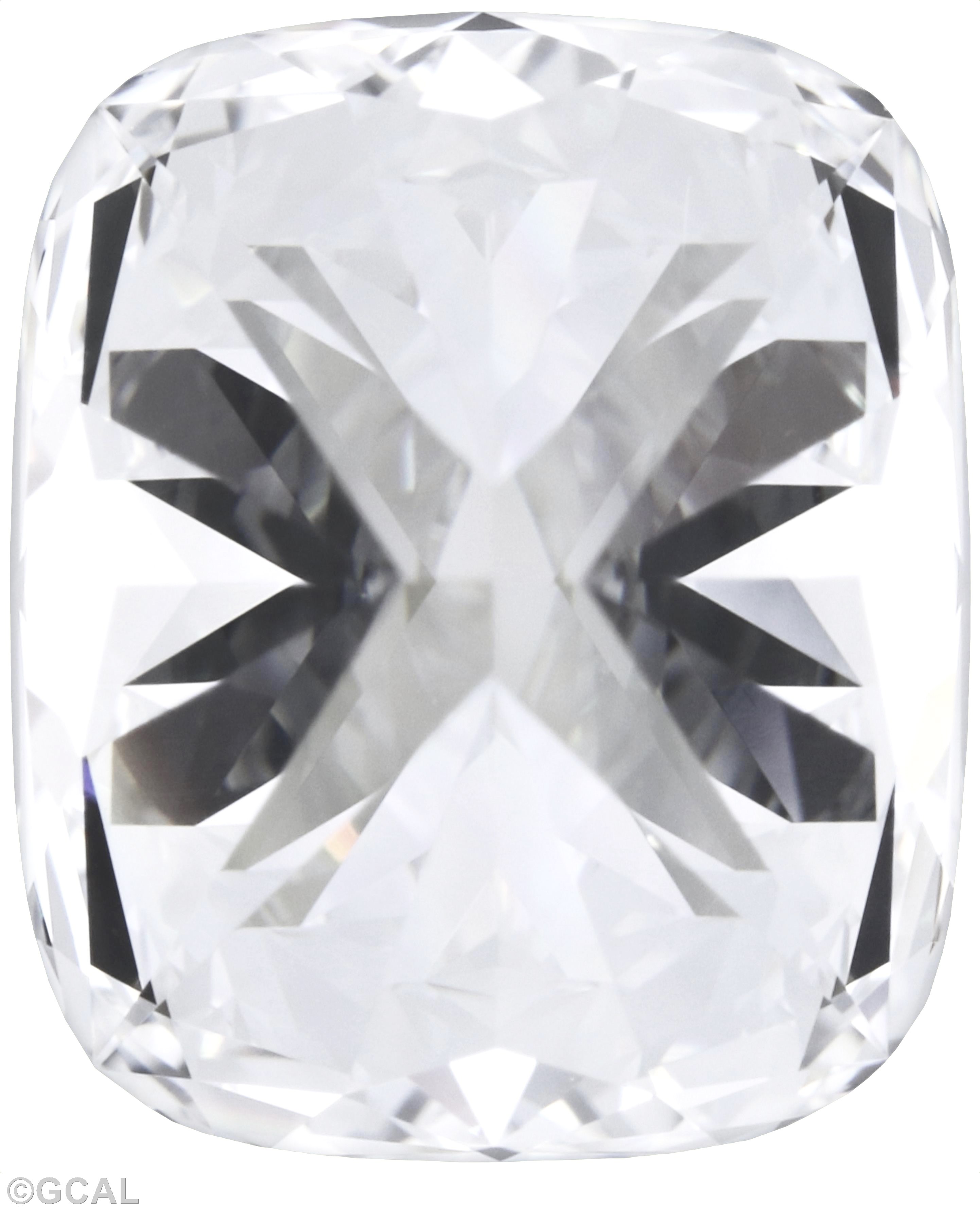 Cushion diamonds feature a combination of modern and brilliant faceting patterns. They can be square, elongated (1.2 - 1.4 L/W), or somewhere in between (1.05 - 1.15 L/W). Cushion cuts come in brilliant (star patterning), modified brilliant (crushed ice), or a hybrid of the two. Ada Diamonds checks cushions for bow ties, fish eyes, and light leakage.