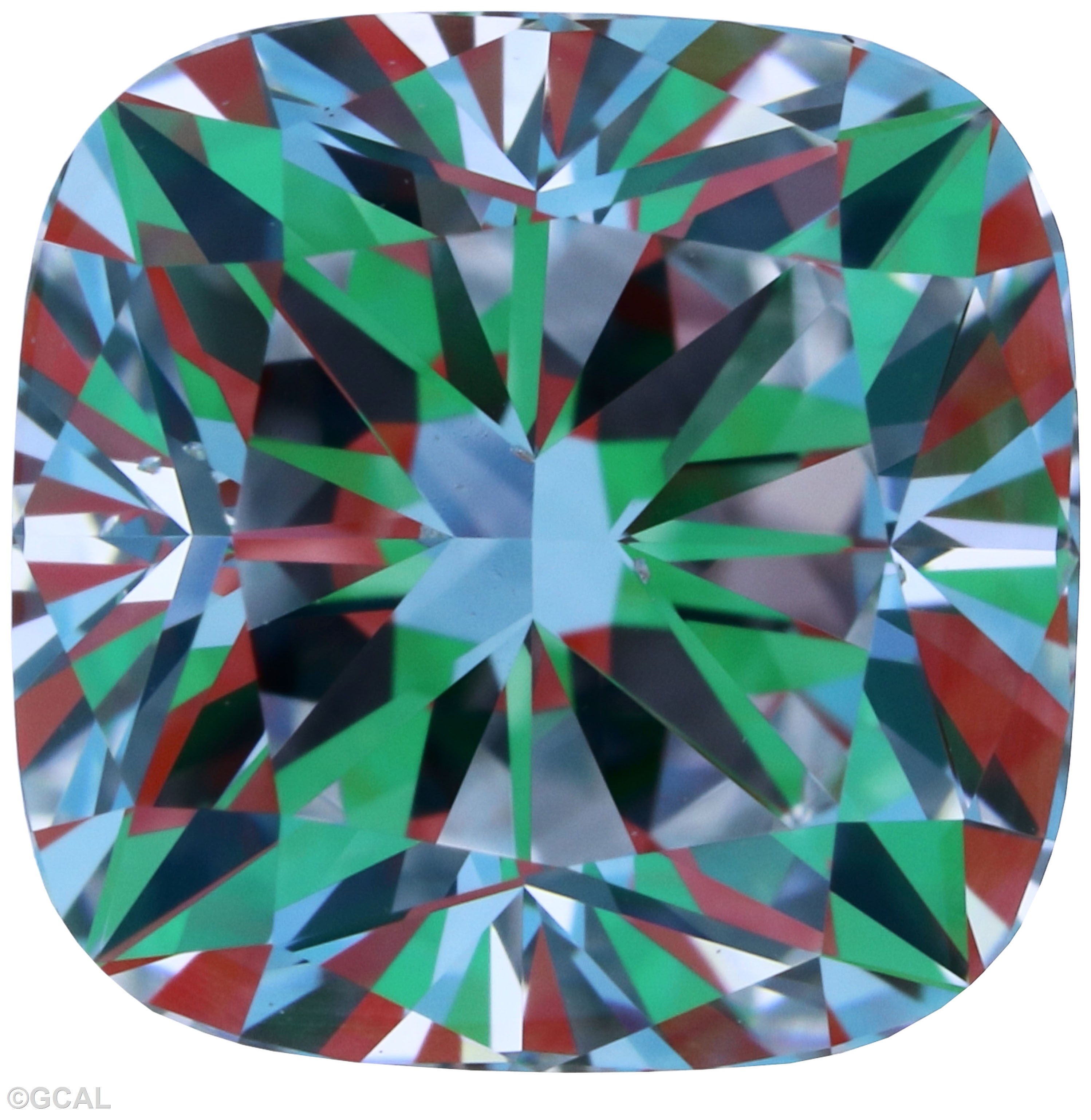 Cushion diamonds feature a combination of modern and brilliant faceting patterns. They can be square, elongated (1.2 - 1.4 L/W), or somewhere in between (1.05 - 1.15 L/W). Cushion cuts come in brilliant (star patterning), modified brilliant (crushed ice), or a hybrid of the two. Ada Diamonds checks cushions for bow ties, fish eyes, and light leakage.