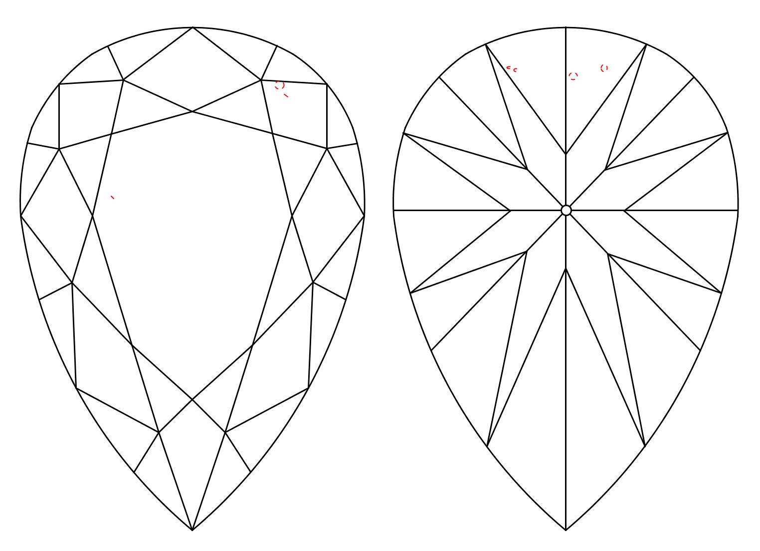 Pears have an elongated shape and wide base that make them appear larger than other cuts of the same carat weight. They can range in L/W ratios from 1.4 - 1.65. Here at Ada, we screen pear cut diamonds for persistent, noticeable bow ties and light leakage in the base.