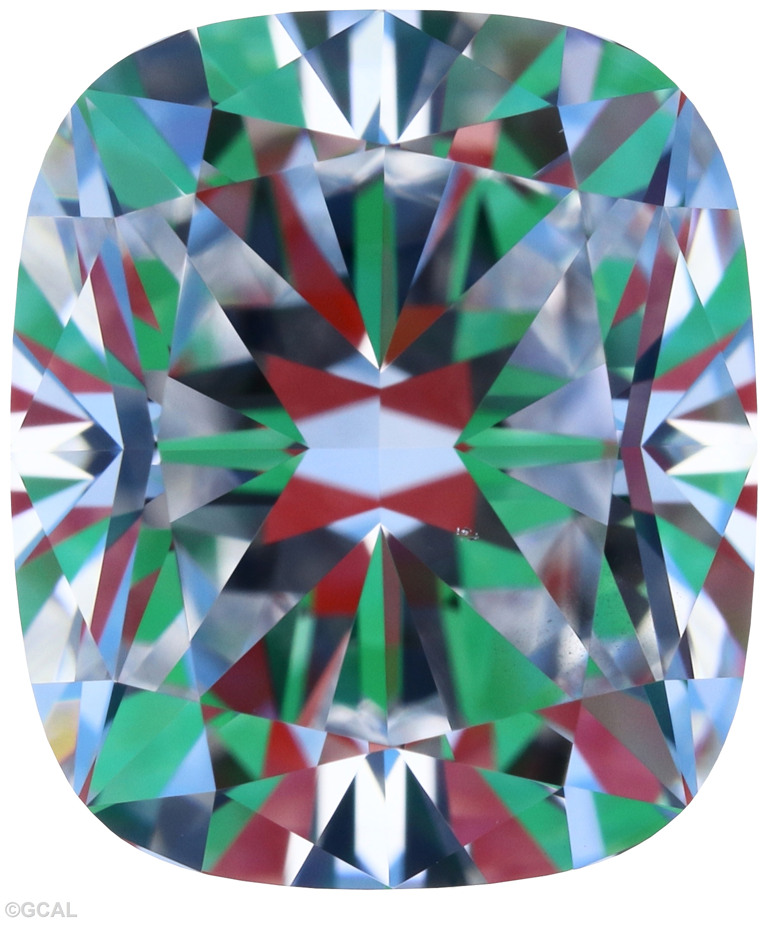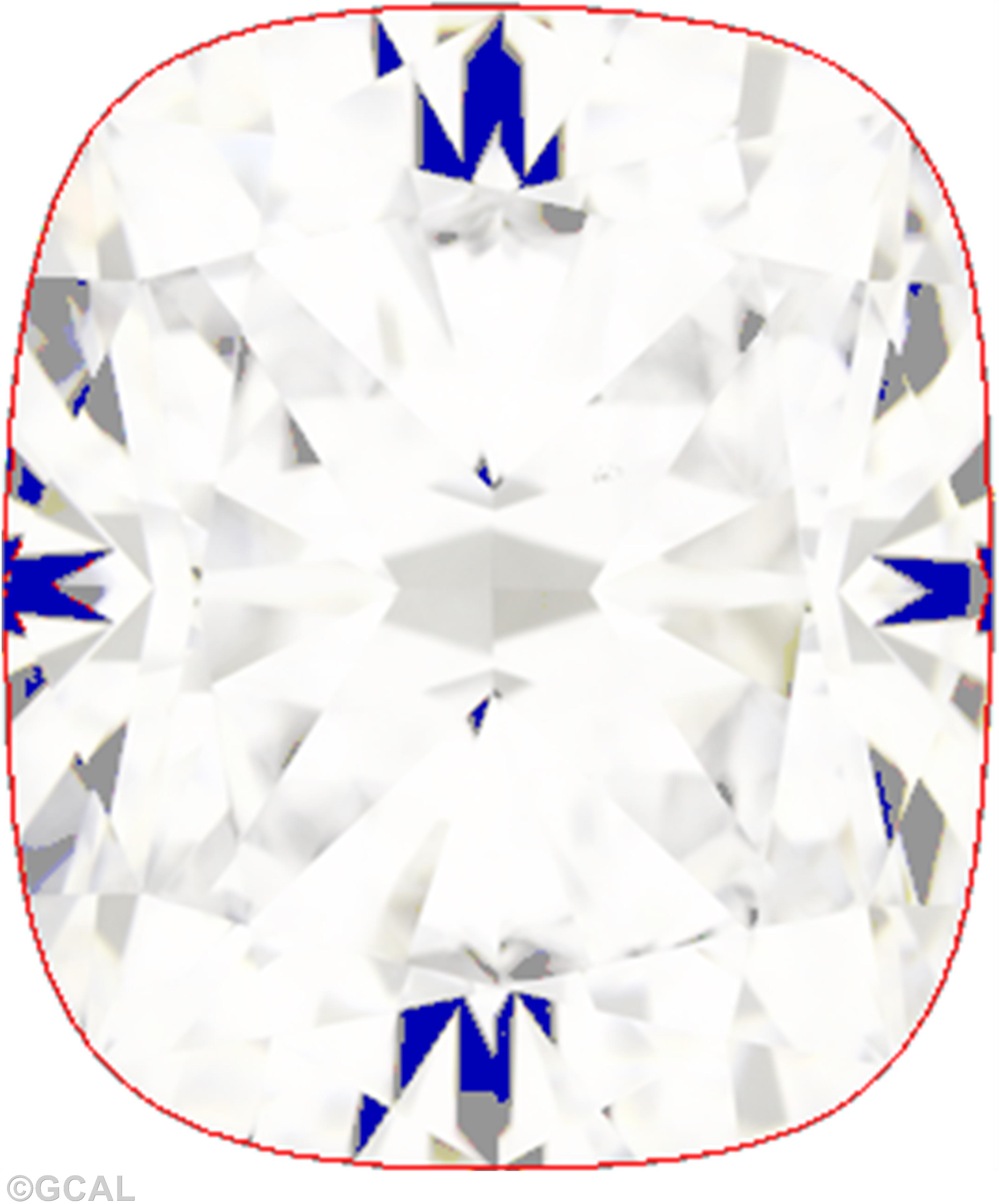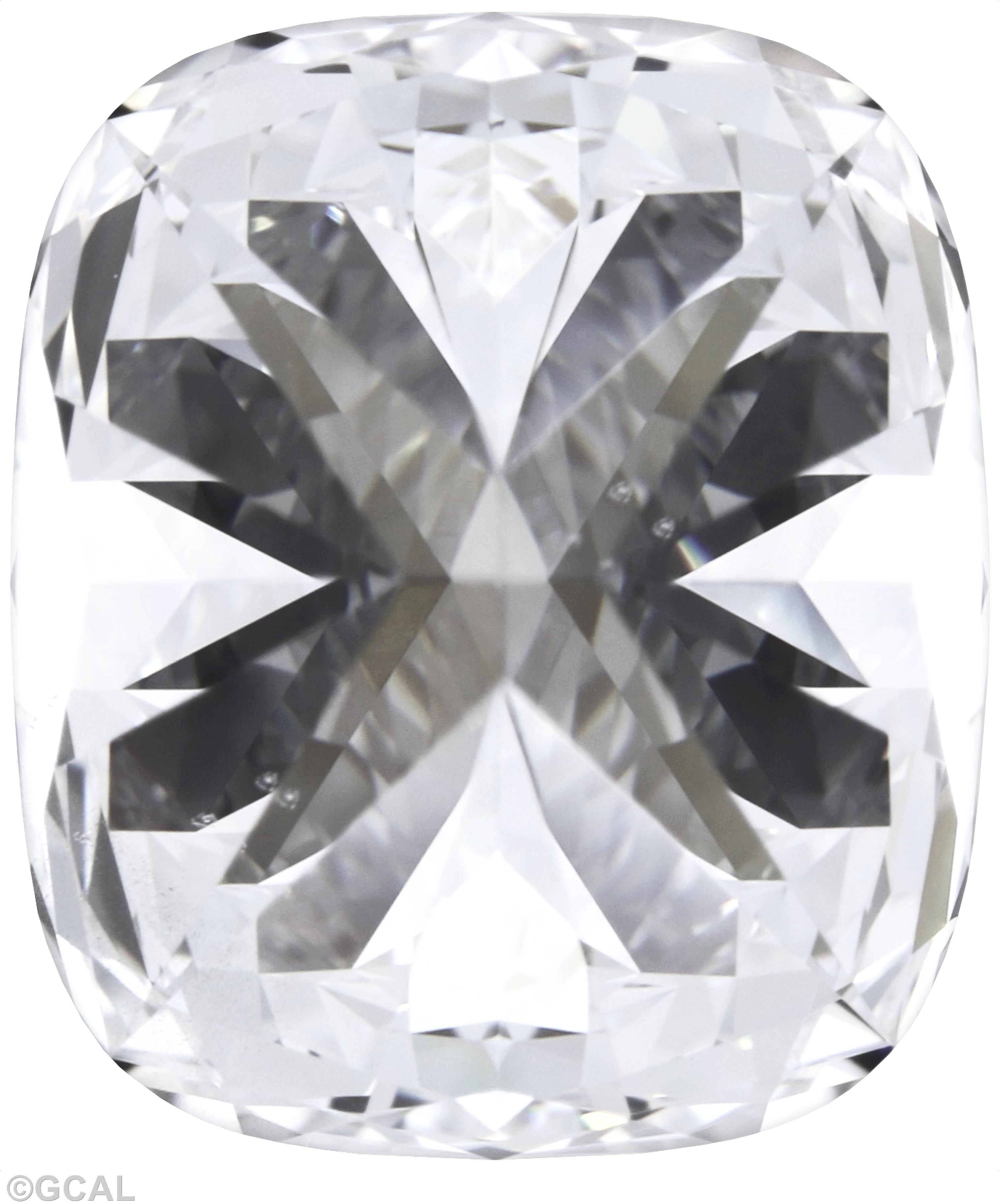 Cushion diamonds feature a combination of modern and brilliant faceting patterns. They can be square, elongated (1.2 - 1.4 L/W), or somewhere in between (1.05 - 1.15 L/W). Cushion cuts come in brilliant (star patterning), modified brilliant (crushed ice), or a hybrid of the two. Ada Diamonds checks cushions for bow ties, fish eyes, and light leakage.