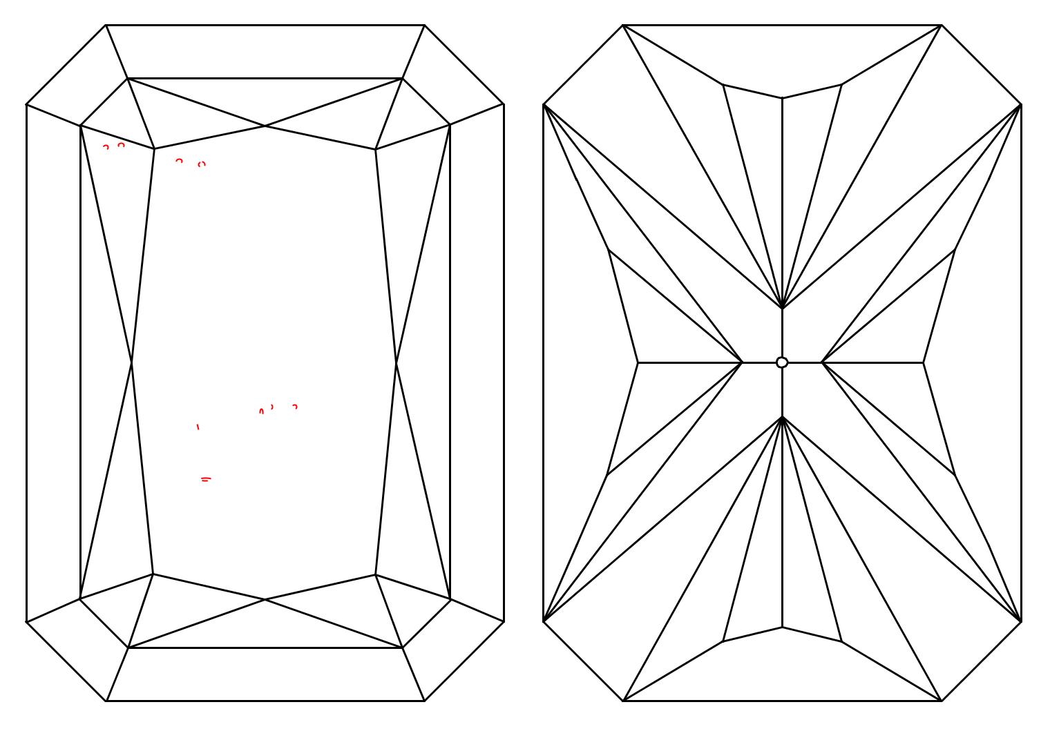 Radiant cut diamonds typically have 70 facets, compared to a round brilliant's 57, giving them extra sparkle and an icy appearance. At Ada Diamonds, we specialize in elongated radiants with length-to-width ratios of 1.35 - 1.45. We screen radiant cuts for empty paneling, bow ties, fish eyes, light leakage, and bulls-eye centers.
