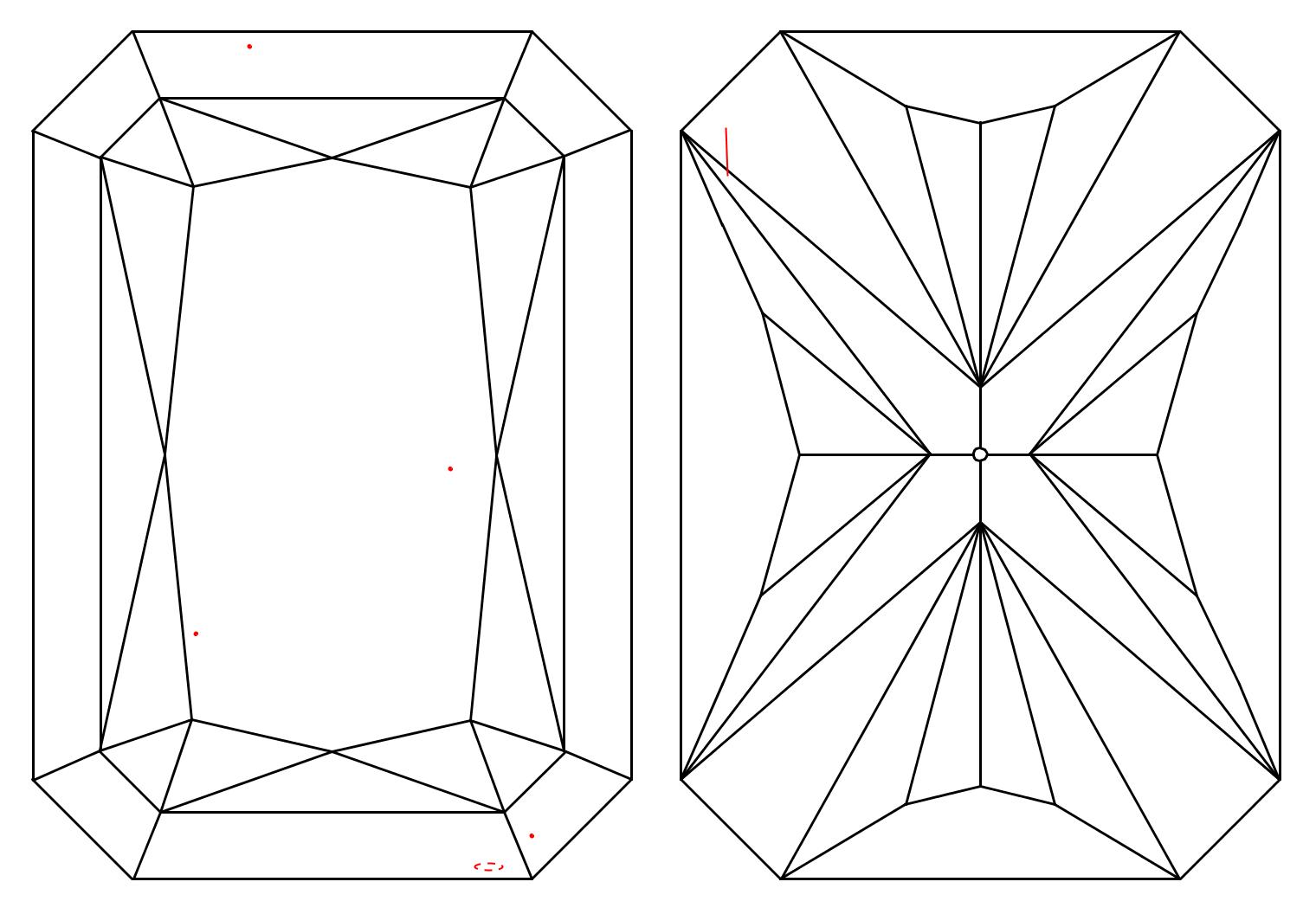 Radiant cut diamonds typically have 70 facets, compared to a round brilliant's 57, giving them extra sparkle and an icy appearance. At Ada Diamonds, we specialize in elongated radiants with length-to-width ratios of 1.35 - 1.45. We screen radiant cuts for empty paneling, bow ties, fish eyes, light leakage, and bulls-eye centers.