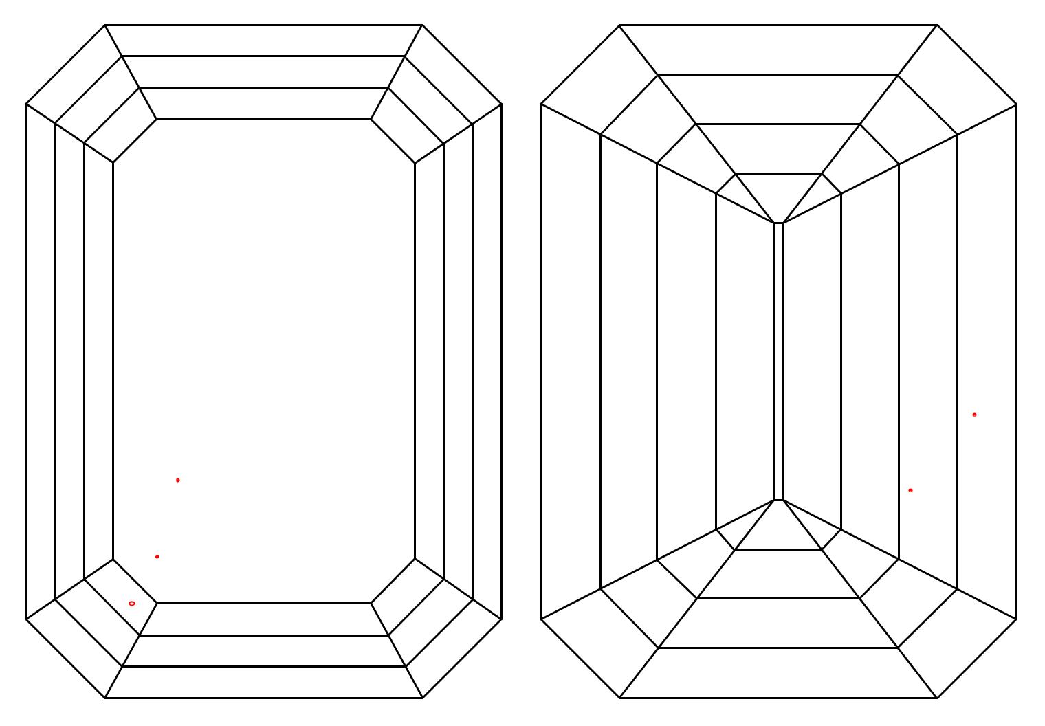 Emerald cuts are step cuts, offering a unique play of light with distinct flashes. Their clean, rectangular lines and step-cut facets embody sophistication and timeless beauty. Ada Diamonds screens emeralds for light leakage and empty facets to ensure optimal light performance.
