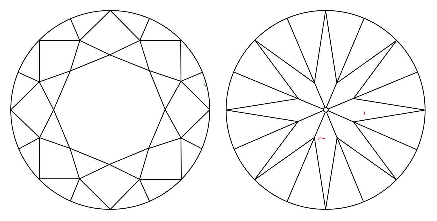 Round cut diamonds are the classic choice for engagement rings. They are the only diamond shape with a universally recognized cut grade. Round diamonds with Excellent (GIA) or Ideal (IGI, GCAL) cut grades are known for the "hearts and arrows" phenomenon – a visual effect created by excellent symmetry. Our curated round diamonds are carefully selected for crisp arrows and optimal brilliance.