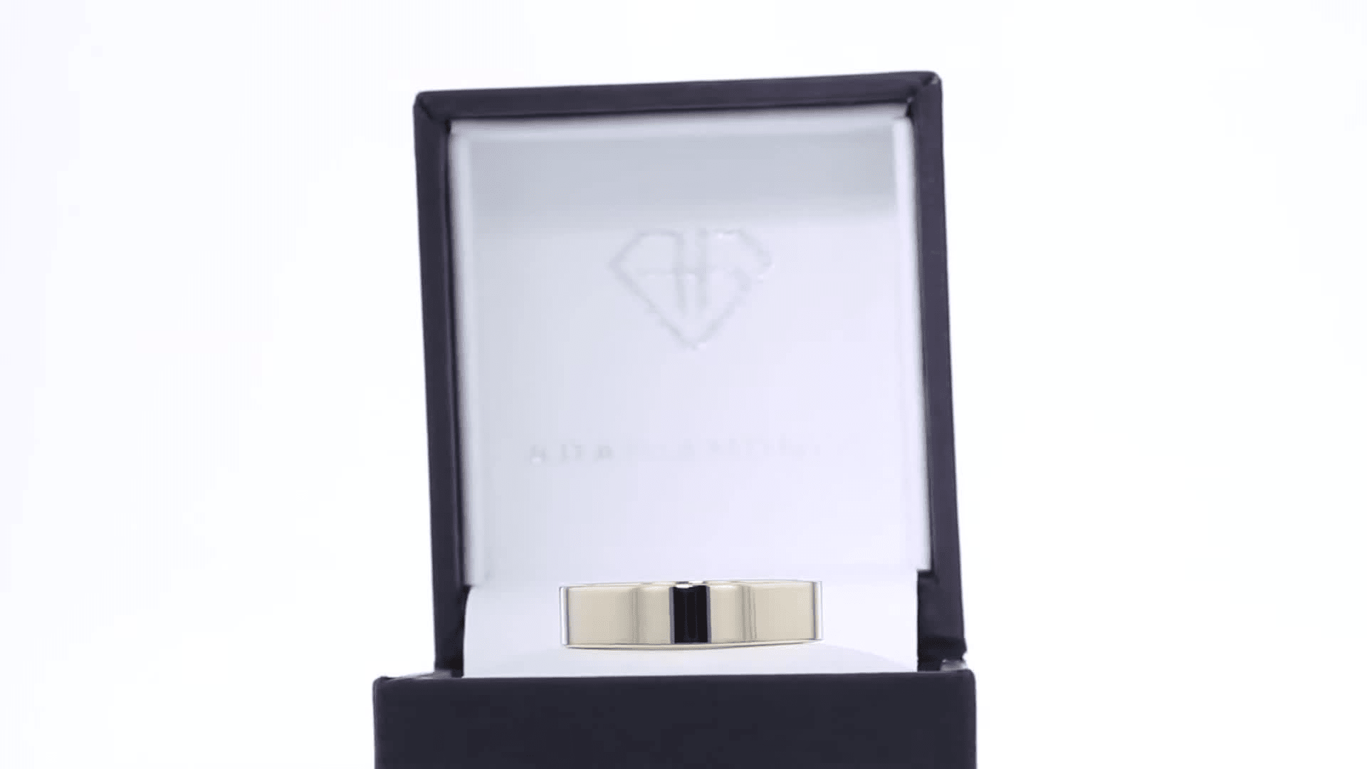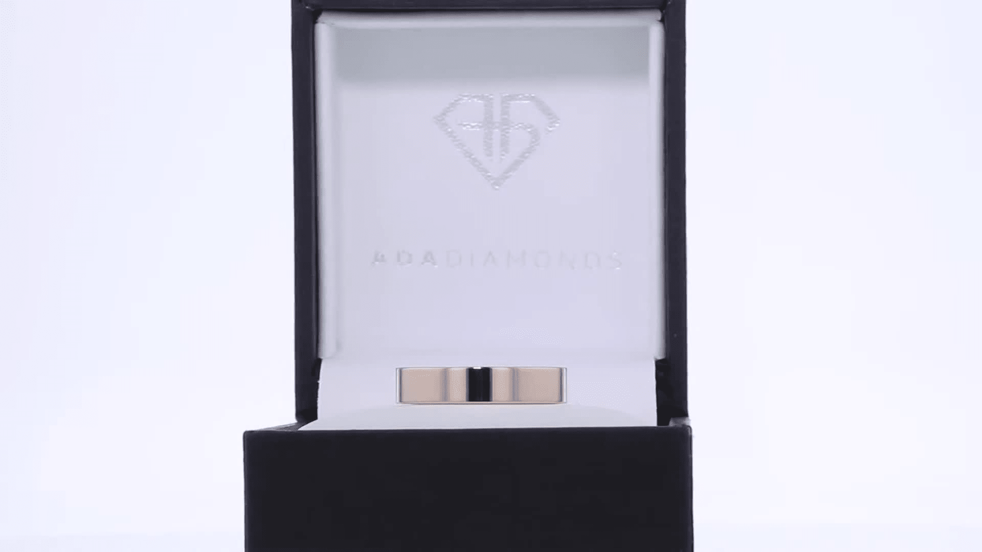 A modern, high shine men's wedding band. Available options: platinum, 14k or 18k gold: white, yellow, rose.