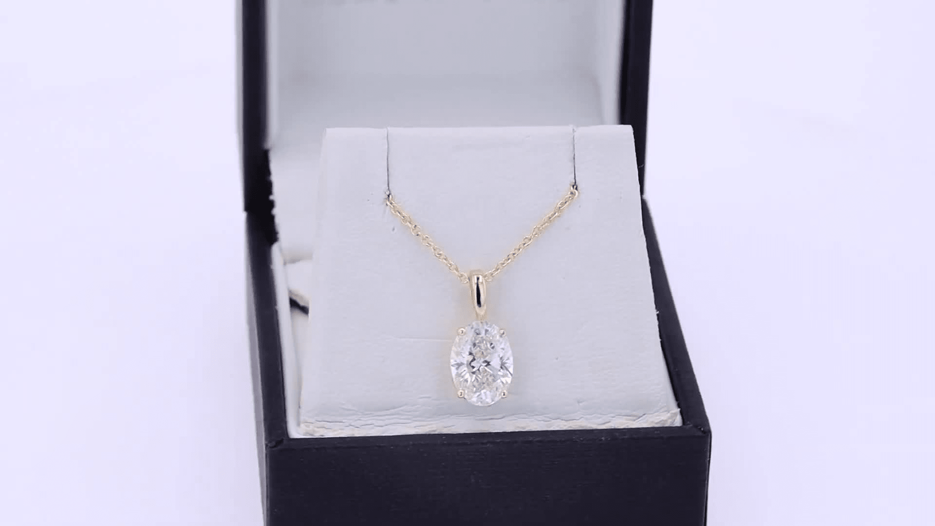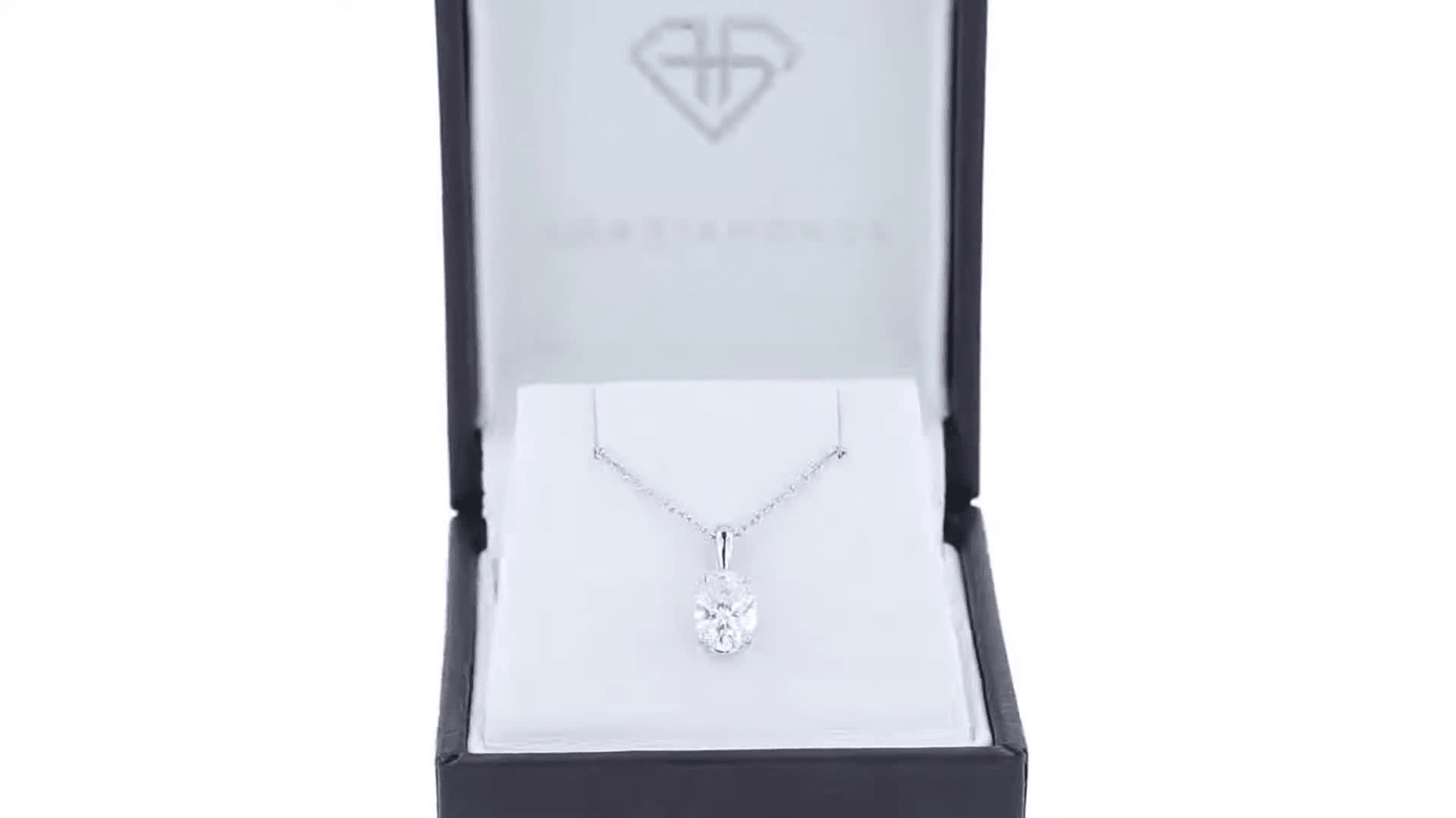 A timeless, classic gift, this pendant features a lab created oval diamond in a four prong solitaire basket.