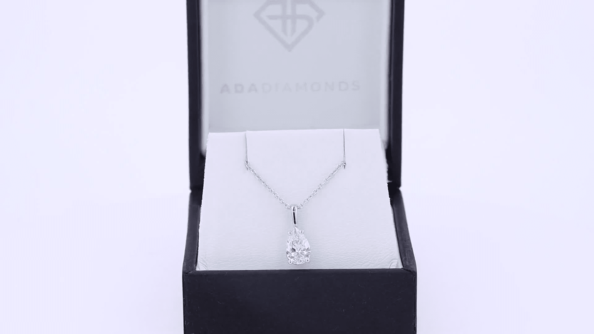 A simple solitaire necklace featuring a lab grown pear cut diamond.