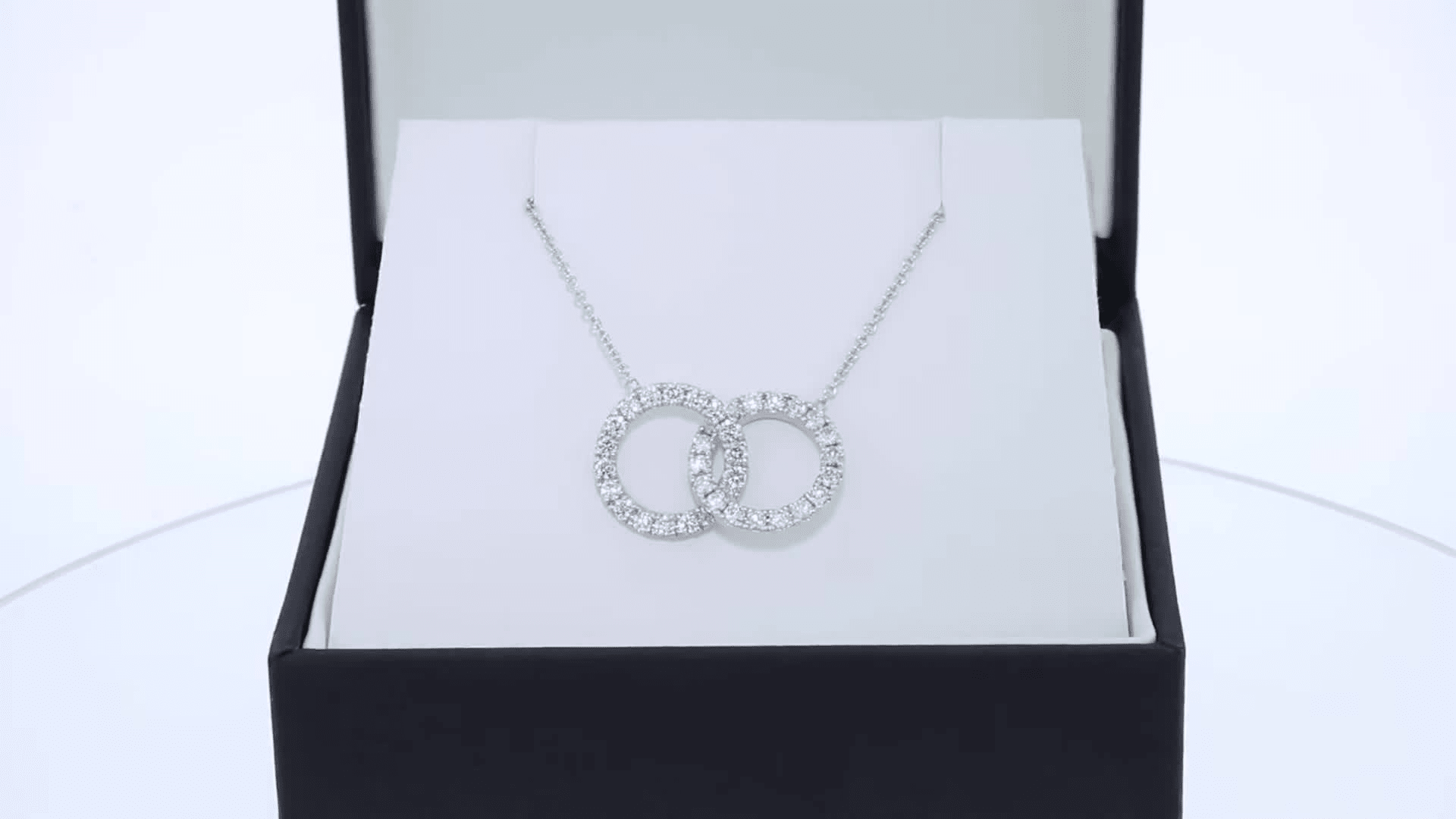 Two interlocking circles of round brilliant lab grown diamonds create a modern pendant that celebrates connection with effortless brilliance.