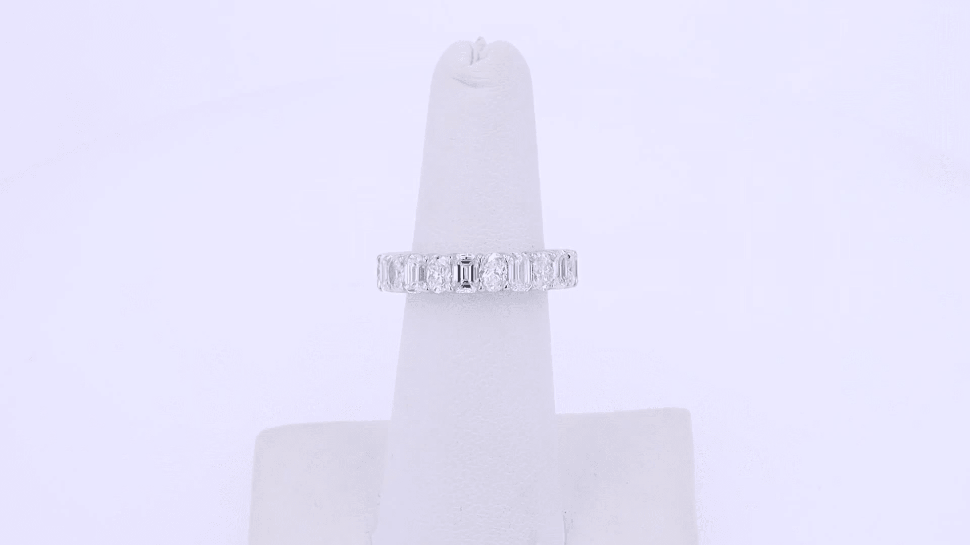 Wow the world with this alternating emerald and oval cut lab diamond eternity band. This ring cannot be re-sized.