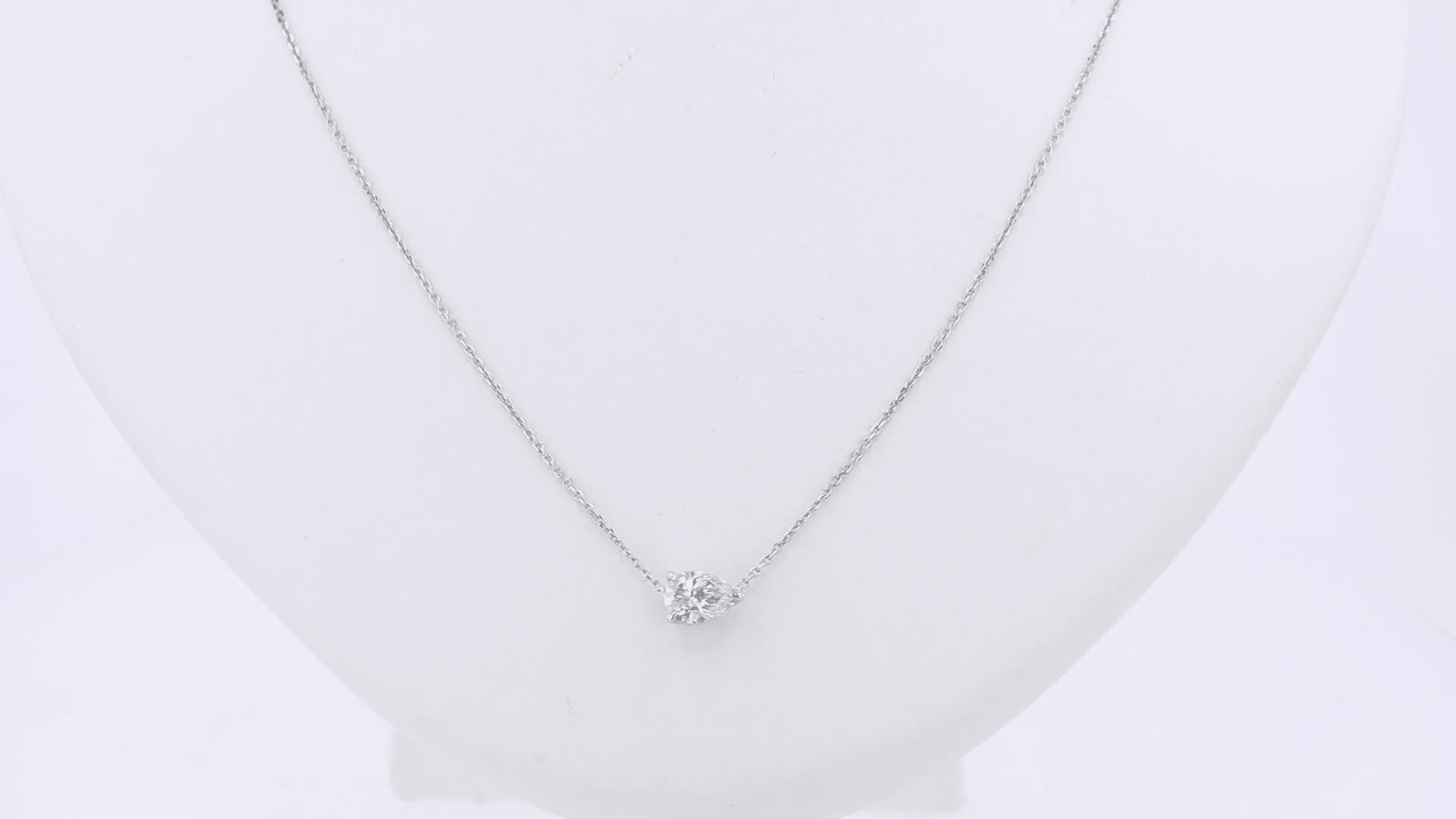 A simple solitaire necklace featuring a lab grown pear cut diamond.