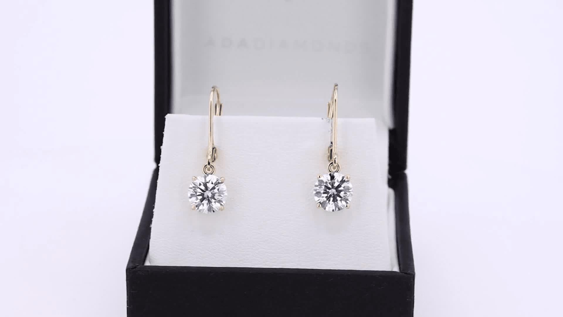 This timeless pair of lab diamond drop earrings includes a matched pair of manmade diamonds in a 14k white, yellow, or rose gold setting with a leverback.