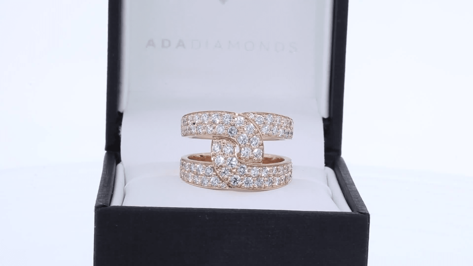 This exquisitely designed ring features interlocking loops of brilliant lab grown diamonds.
