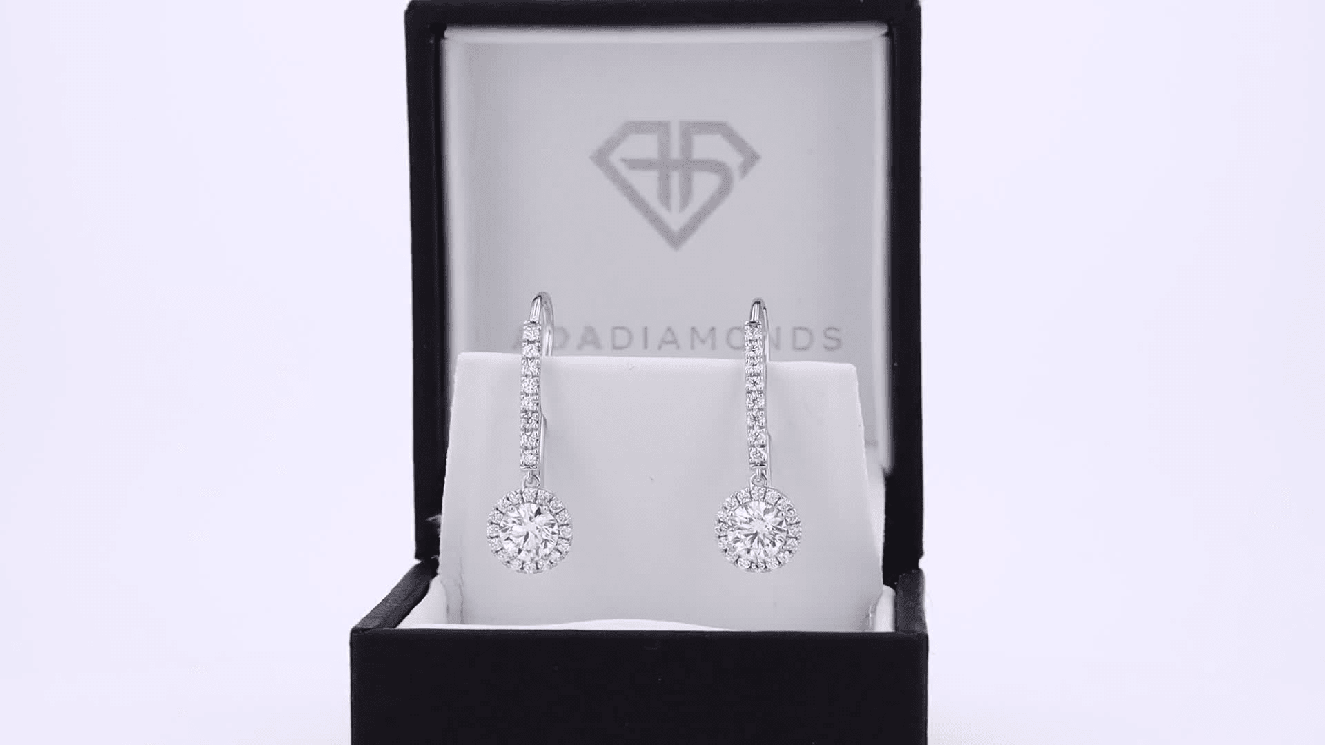 A sophisticated pair of stud earrings that feature lab grown diamonds accented by surrounding halos, with customizable diamond sizes ranging from 0.35ct to 3.0ct. Available in 14k white, yellow, or rose gold settings.