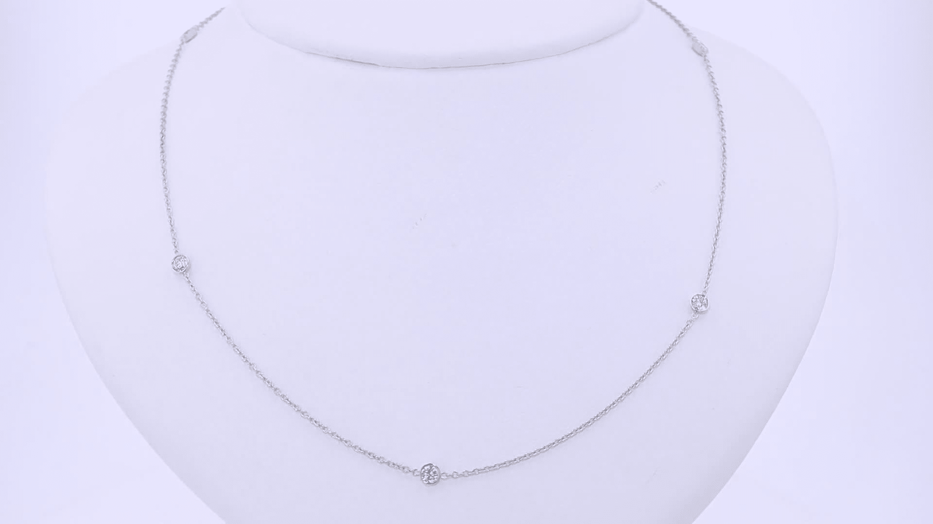 A statement-making necklace with seven bezel-set diamonds suspended on a 20" chain, designed for effortless layering.