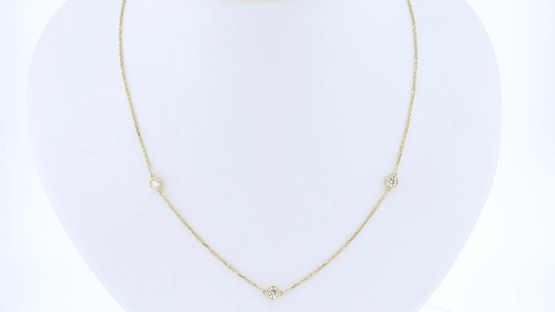 Three bezel-set diamonds suspended in perfect balance, designed for effortless layering.