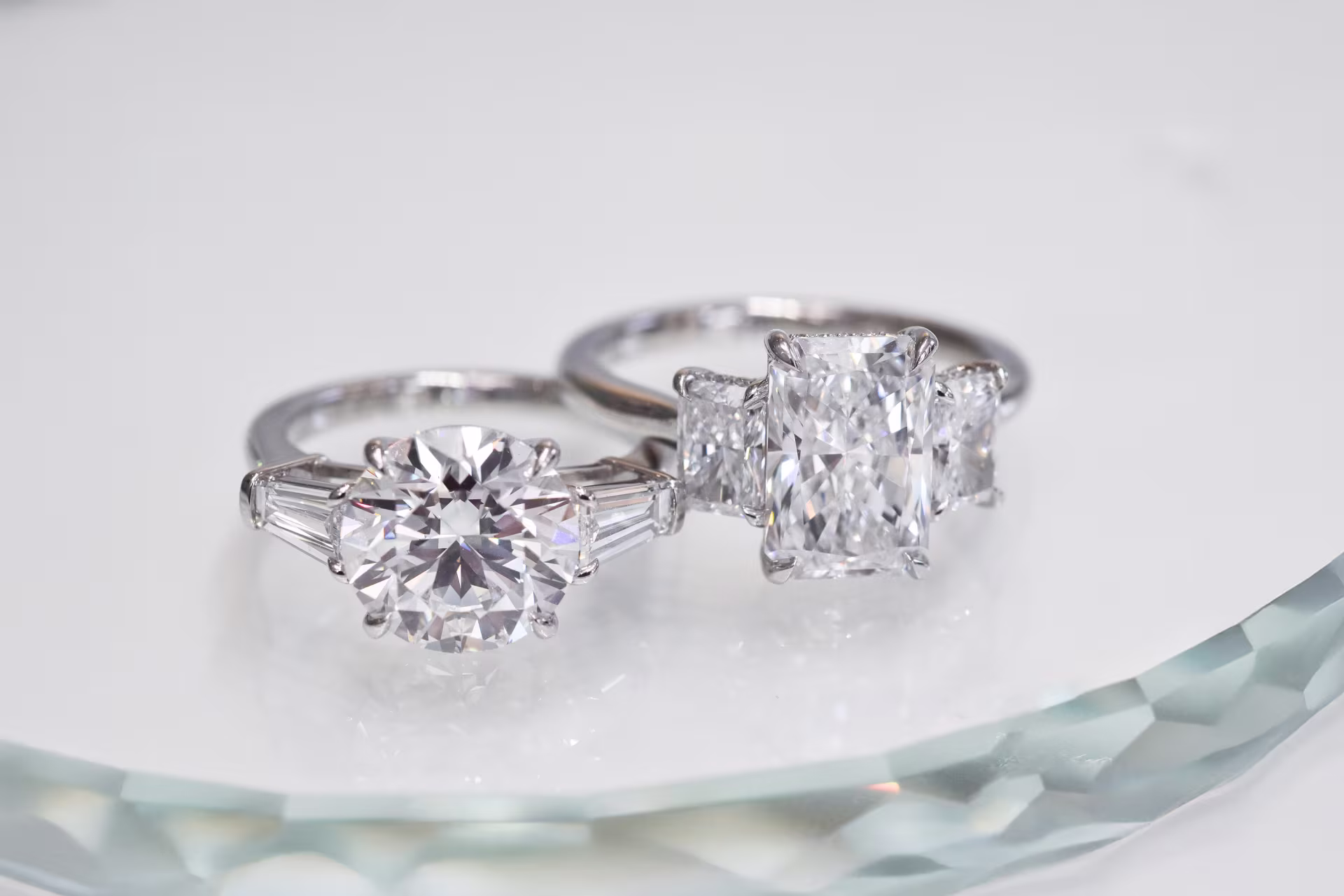 There’s ongoing debate over which metal is “harder.” Platinum is more malleable, meaning a prong hit hard enough is likely to bend or shift rather than break. White gold is more brittle its prongs tend to hold their shape, but under extreme stress, they can snap instead of bending. Neither metals are indestructible, so it is important to be mindful with your jewelry and follow our care tips!