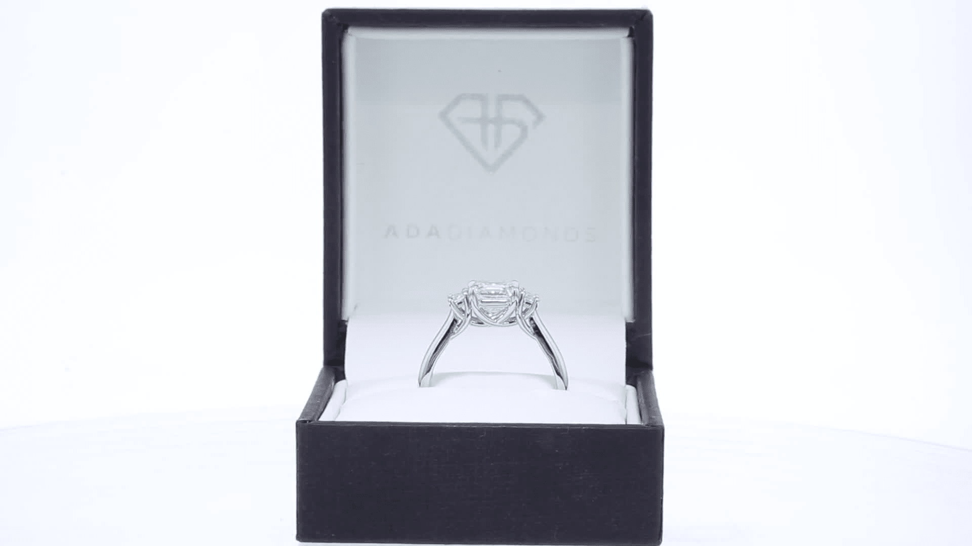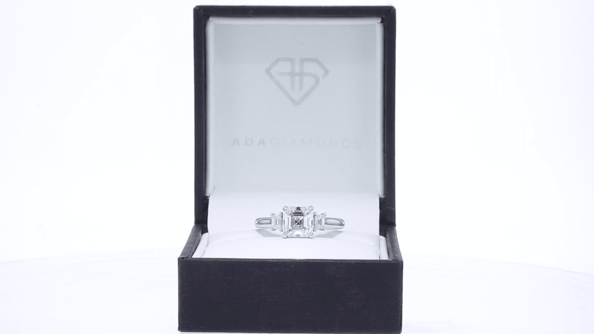 Platinum Asscher and Emerald Cut Lab Created Diamond Ring Ada Diamonds Design AD-293 Floral Background