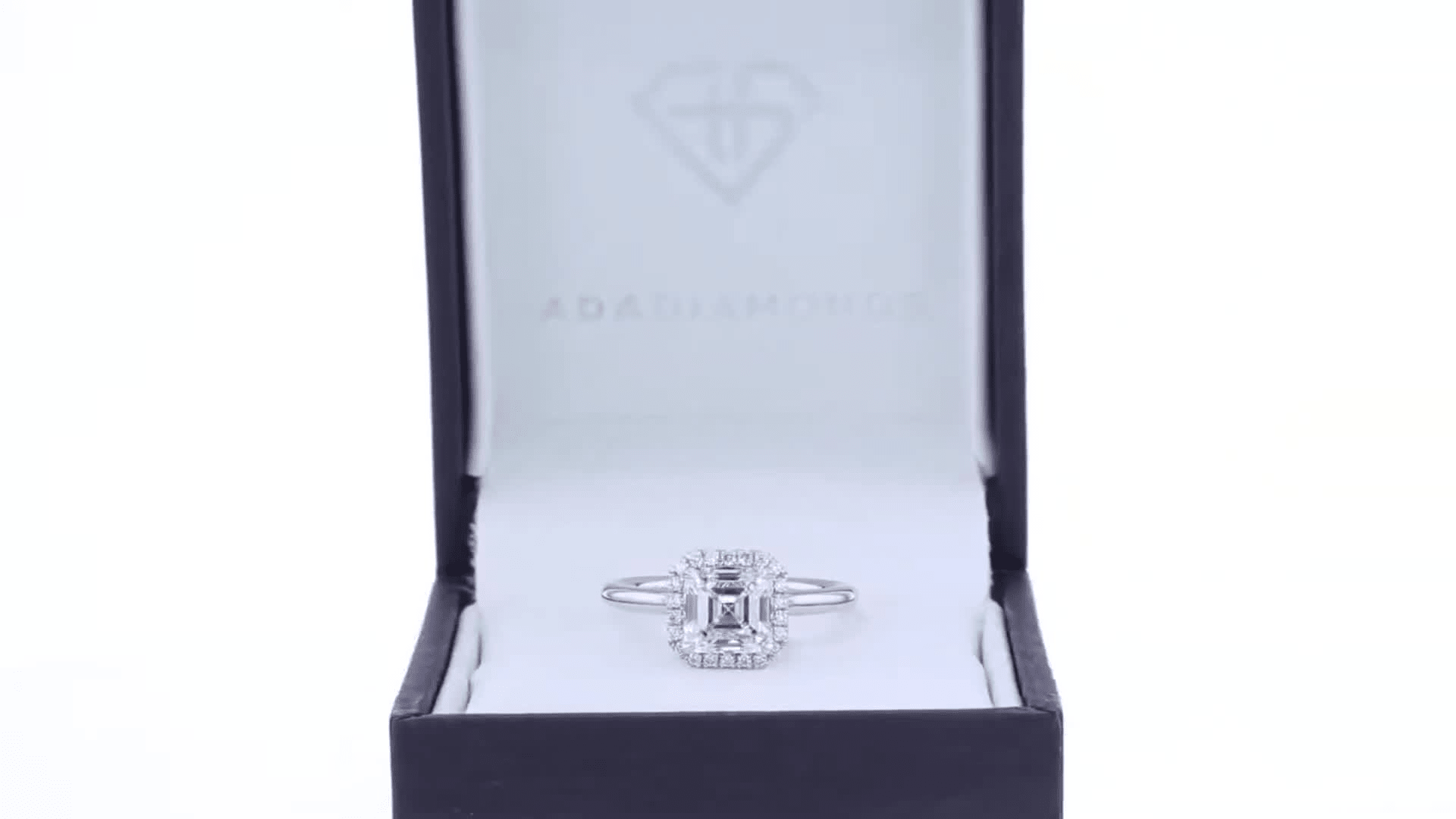 18kt White Gold Asscher Single Halo Setting featuring 2.0 Carat Lab Diamonds (Main View)