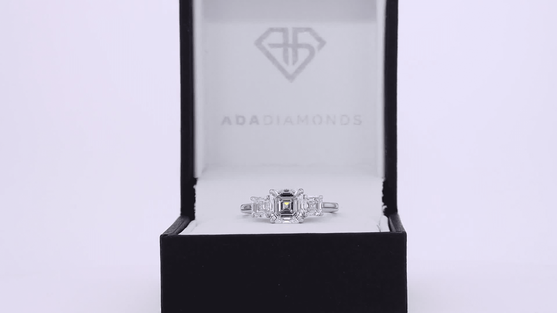 asscher three stone lab diamond engagement ring