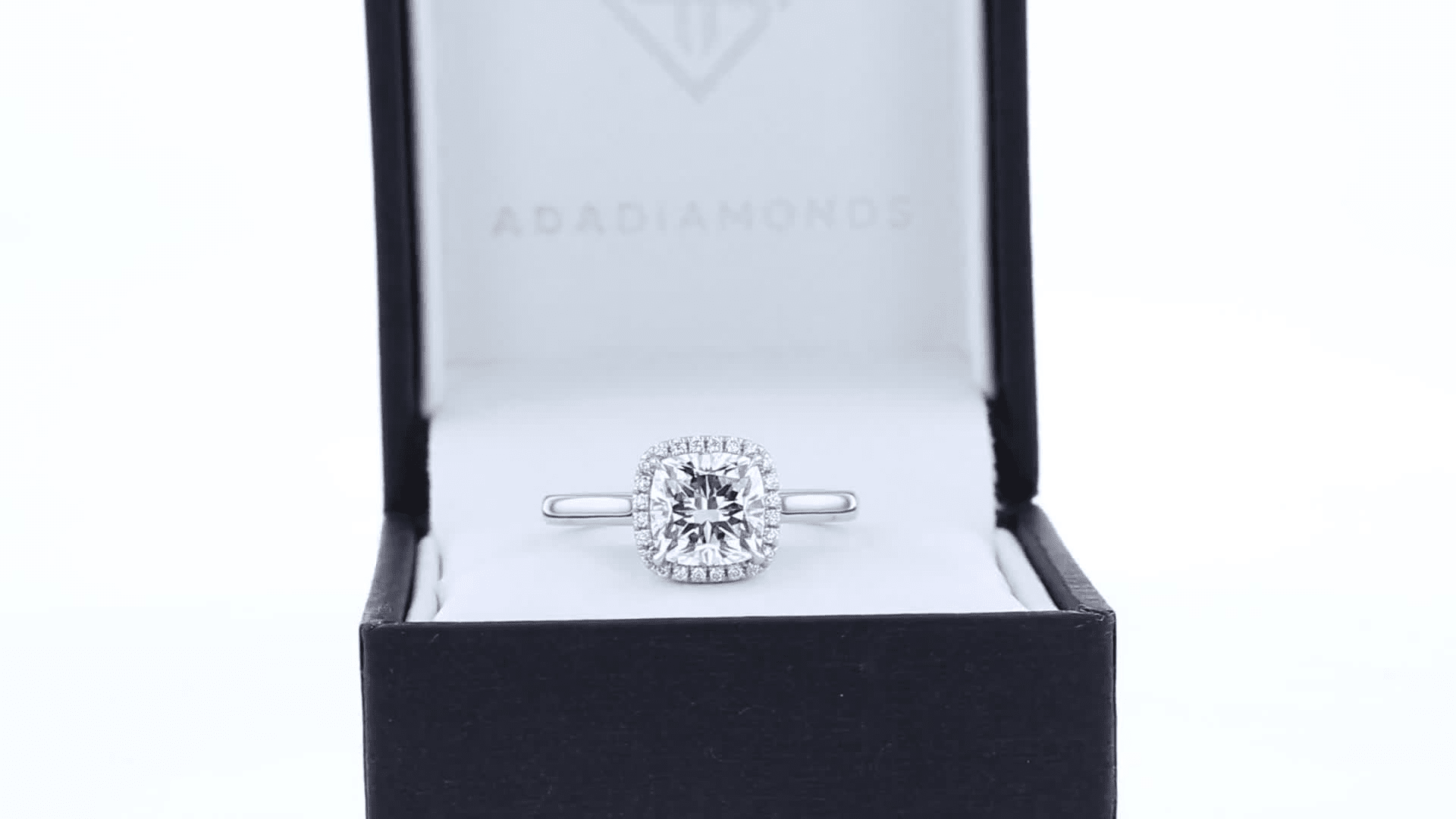 White Gold Cushion Single Halo Diamond Engagement Ring featuring Exceptional Quality 2.0 Carat Diamonds ()