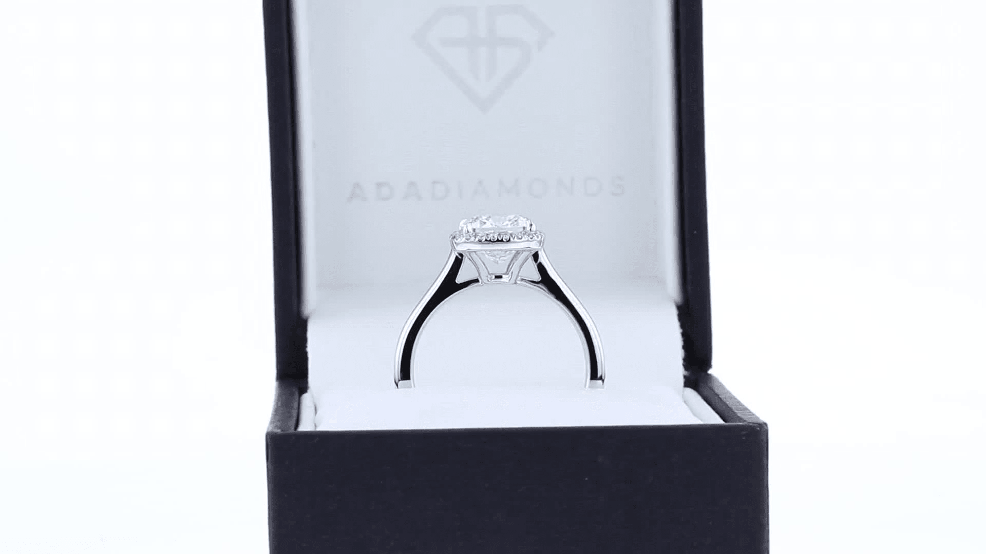 White Gold Cushion Single Halo Setting featuring Exceptional Quality Lab Diamonds (Profile View)