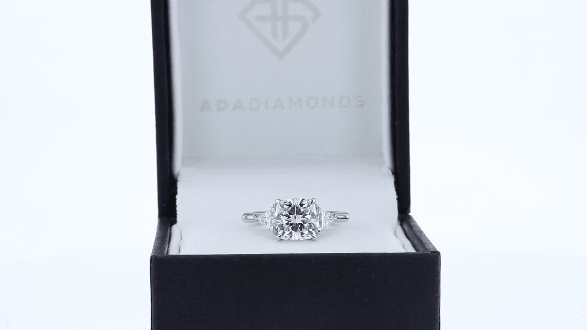 Exceptional Quality 3.0 ct Diamonds set in Platinum Cushion and Trillion Diamond Engagement Ring (Main View)