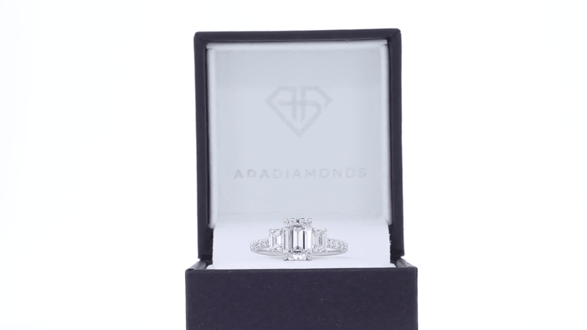 2.5 ct emerald cut three stone lab diamond engagement ring platinum ada diamonds design ad 468