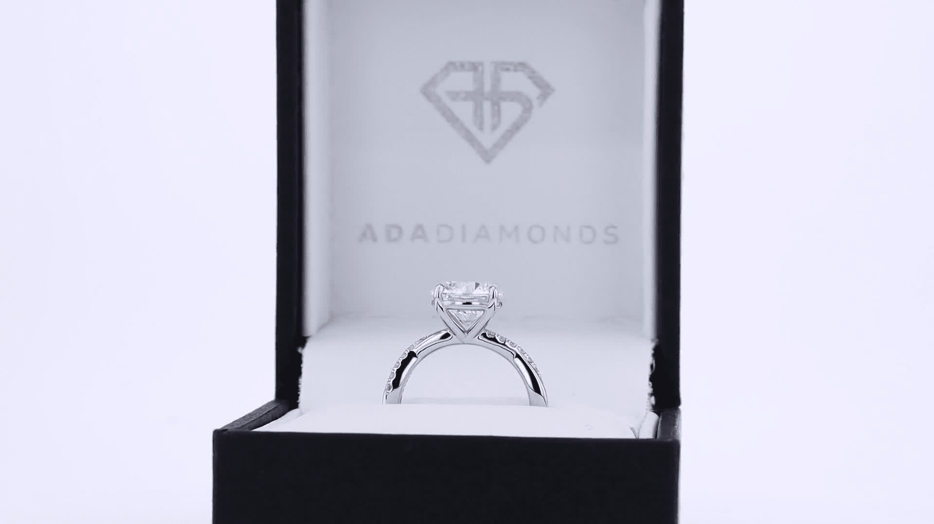 platinum 2 carat asscher cut lab diamond engagement ring with twisting diamond band ada diamonds design ad 154 on model