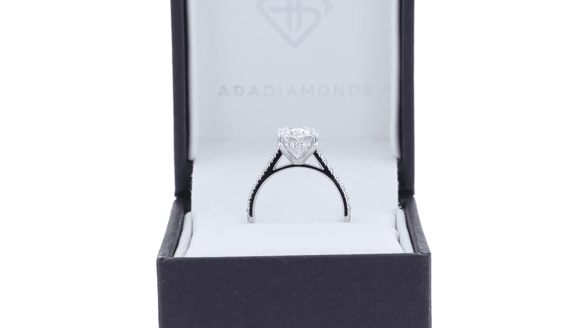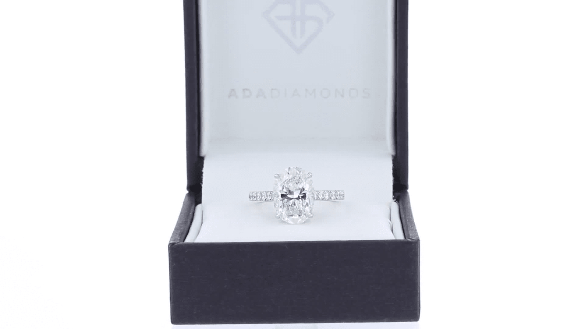 2.50 Carat Oval Pave Lab Diamond Engagement Ring in White Gold Side View Ada Diamonds AD-190