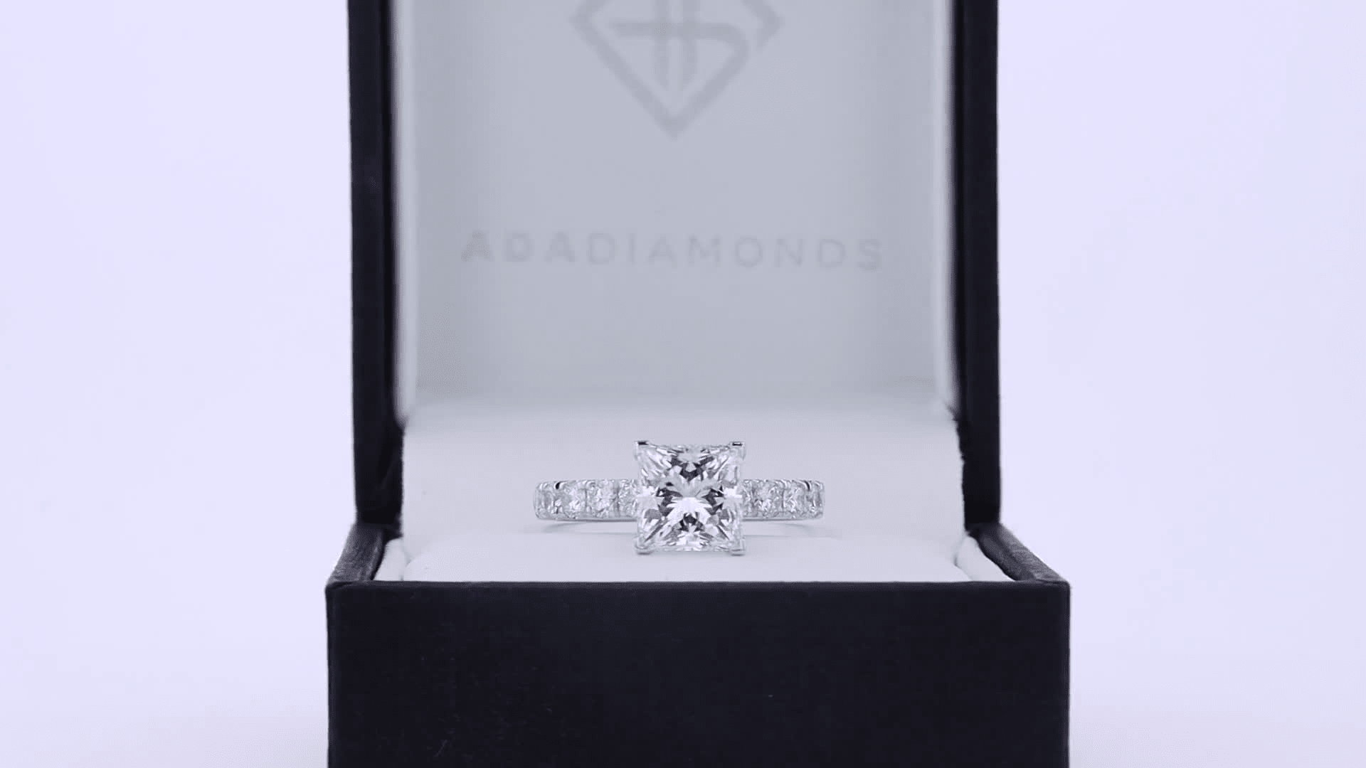 platinum 3 ct princess cut lab grown diamond pavé engagement ring ada diamonds design 345 profile view