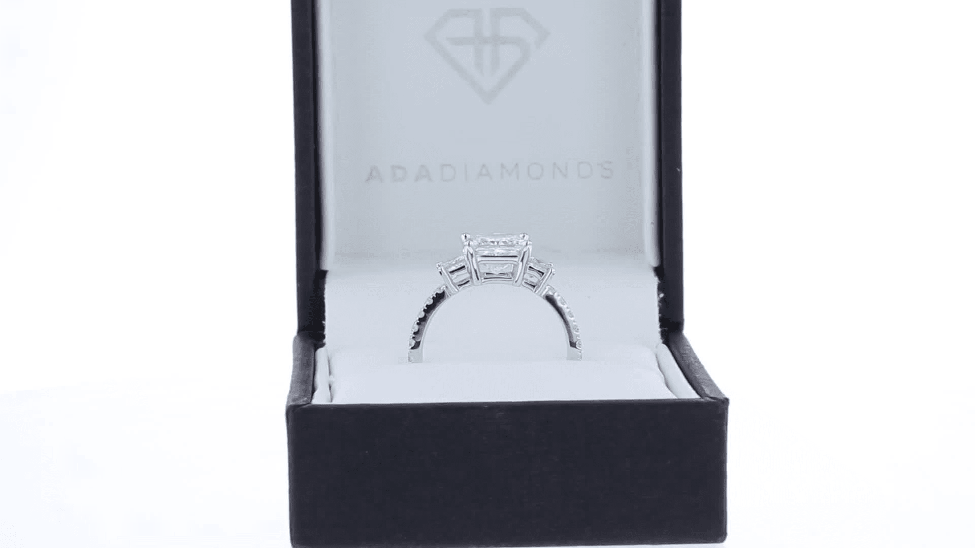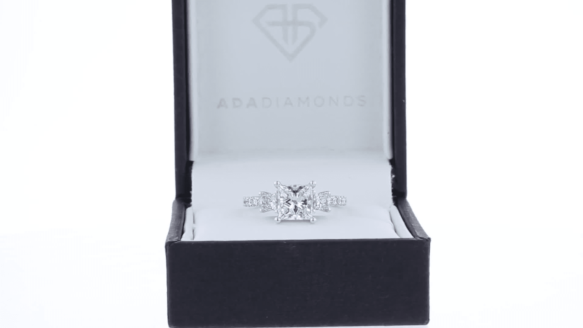 White Gold 1.75ct Princess Cut Pavé 3 Stone Ring with Man Made Diamonds Ada Diamonds Design AD-477 in Box