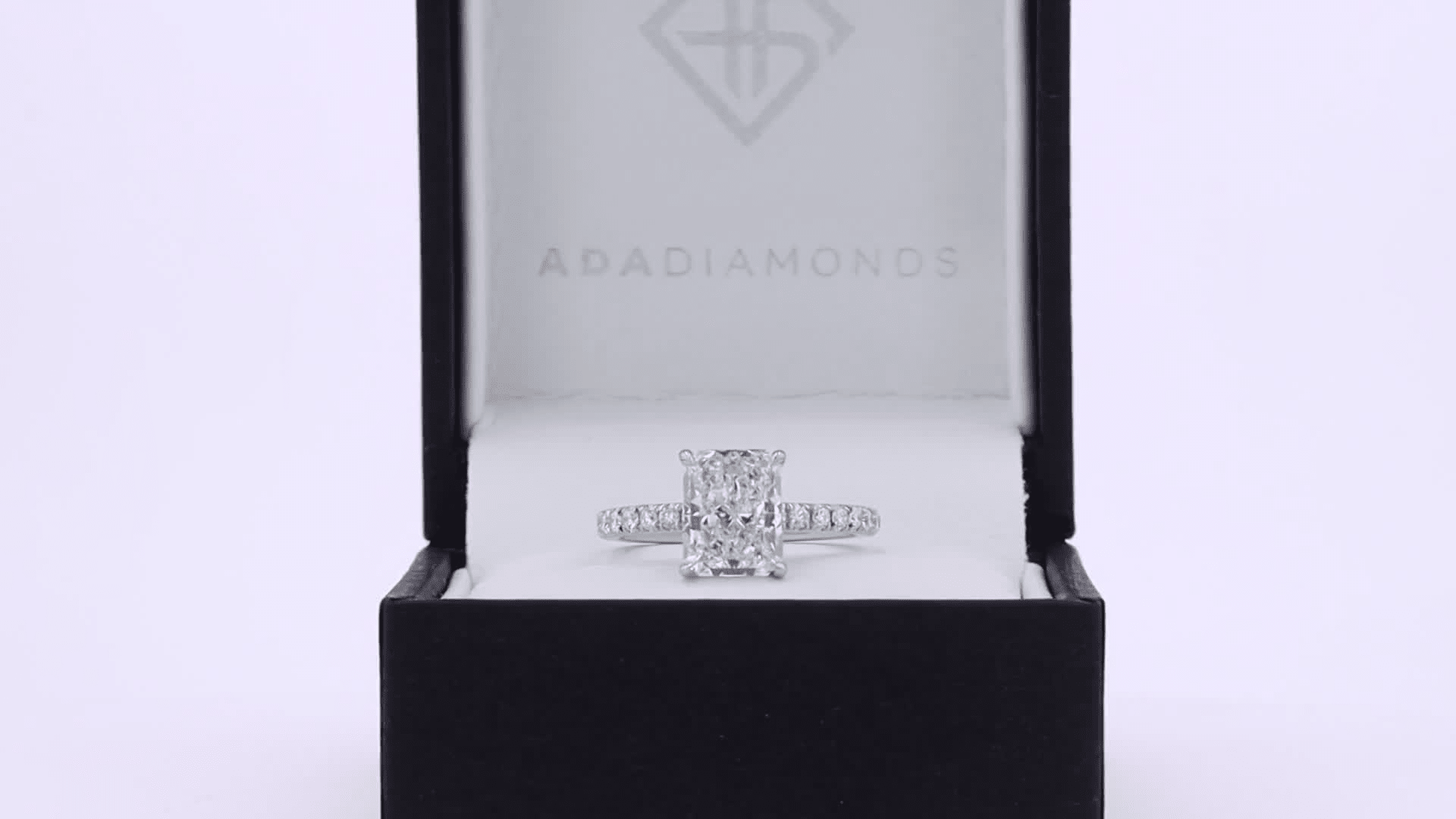 platinum 2.5 ct radiant cut petite four prong pavé lab grown diamond engagement ring ada diamonds design ad 229