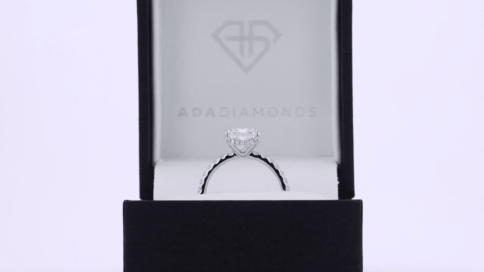 White Gold Radiant Petite Four Prong Pavé Diamond Engagement Ring featuring High Quality 3.75 Carat Diamonds (Main View)