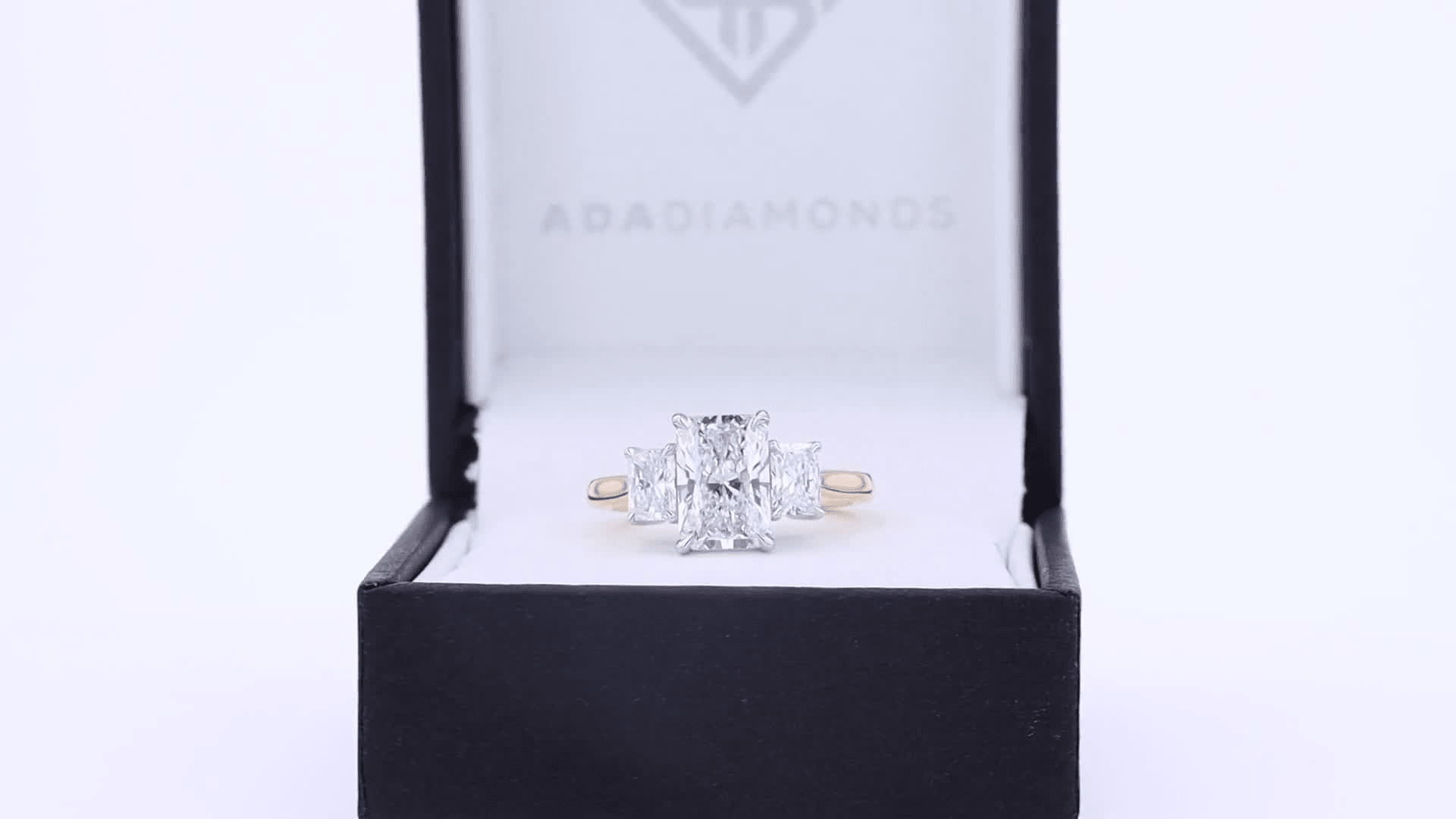 profile of 2.5 carat radiant lab diamond three stone engagement ring ada diamonds design ad 484