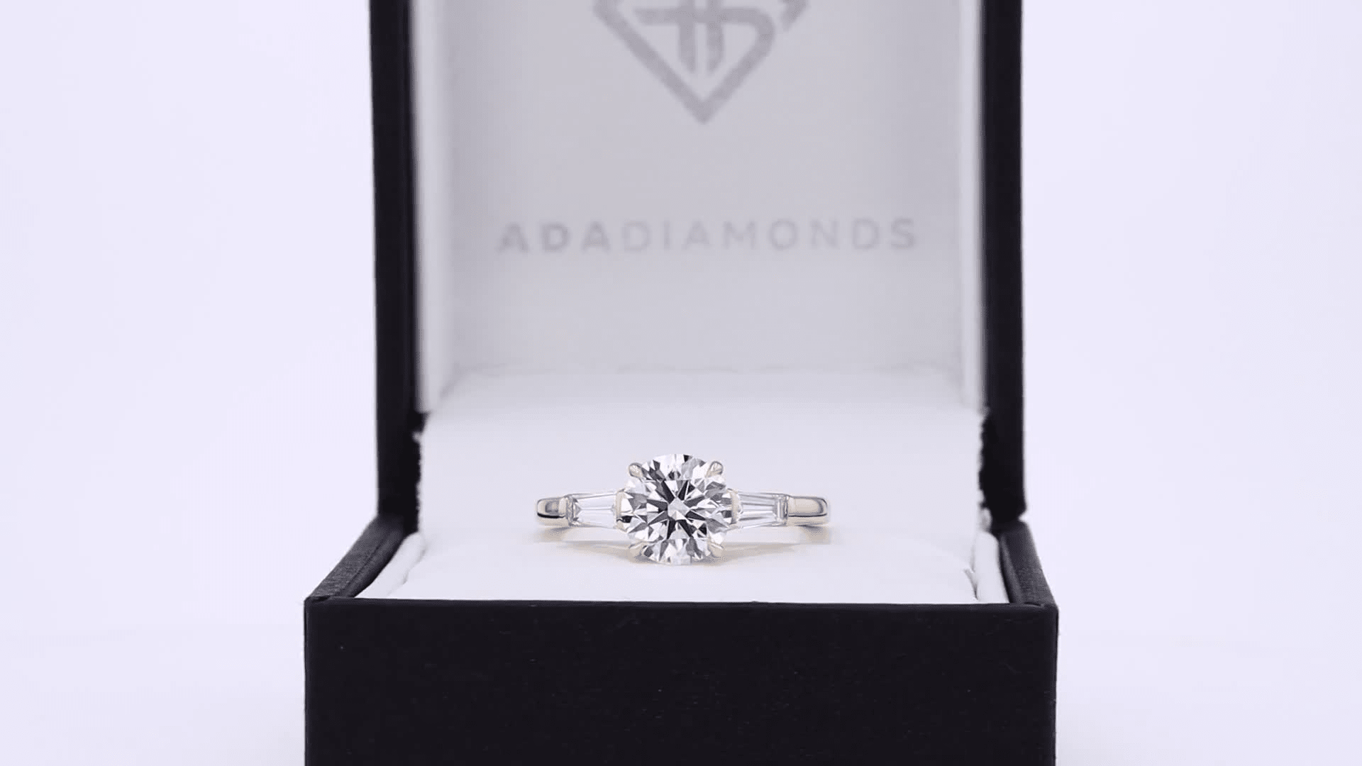 Platinum 3 carat Round and Baguette Engagement Ring Featuring 3 ct Excellent Round Lab Grown Diamonds Ada Diamonds Design AD-071