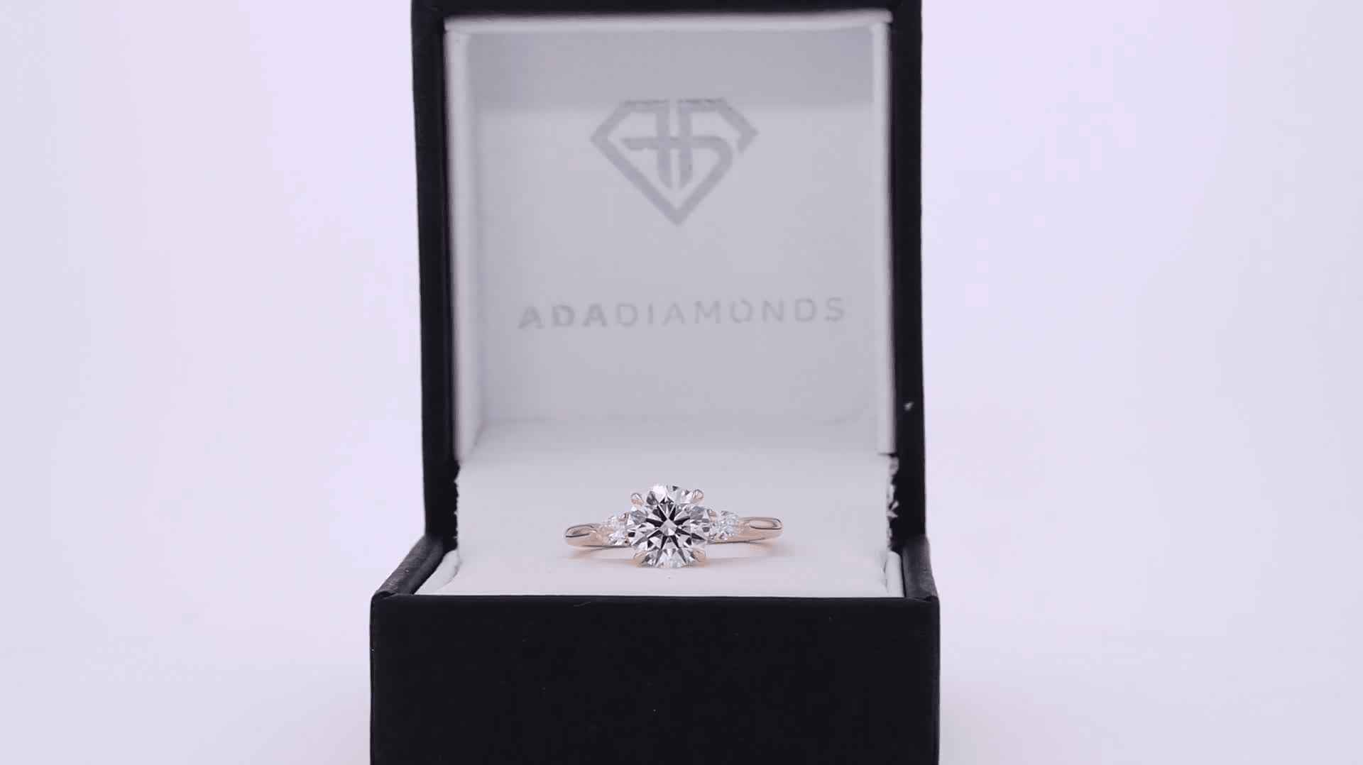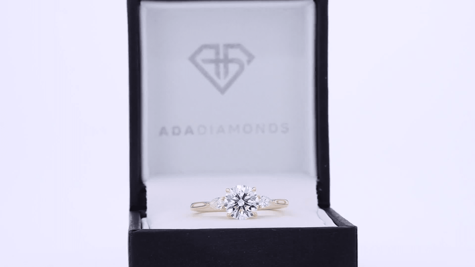 14k gold 1.75ct round lab diamond engagement ring with pear side stones ada diamonds design ad 456