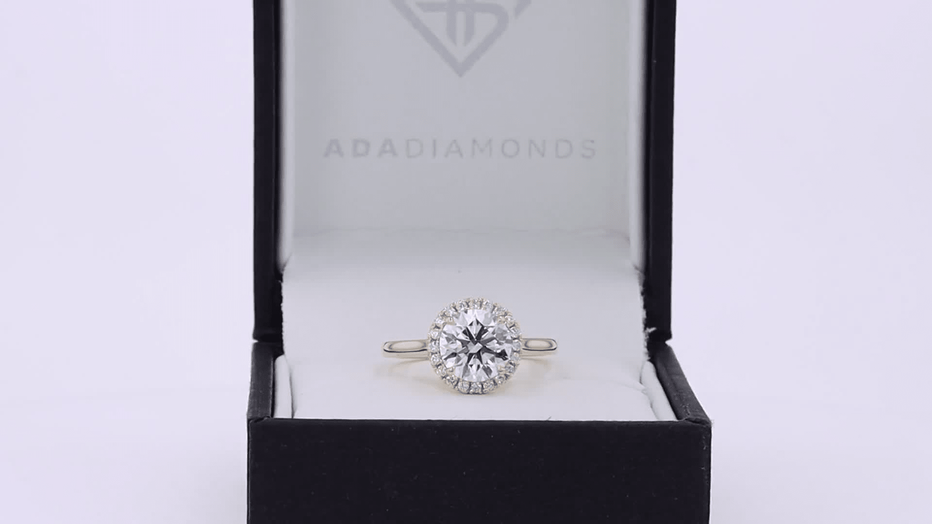 Platinum 1.75ct Round Lab Diamond Ring with a Halo Ada Diamonds Design AD-073 in Box