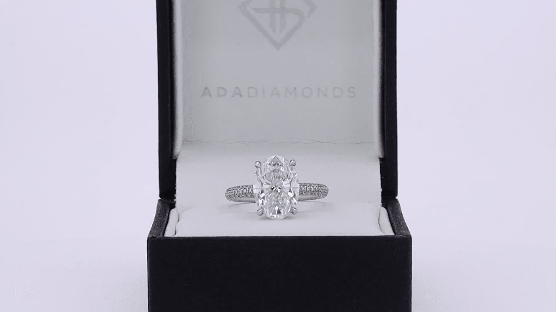 3 Carat Oval Lab Diamond Engagement Ring with Three Sided Pavé Band in Platinum Ada Diamonds AD-172