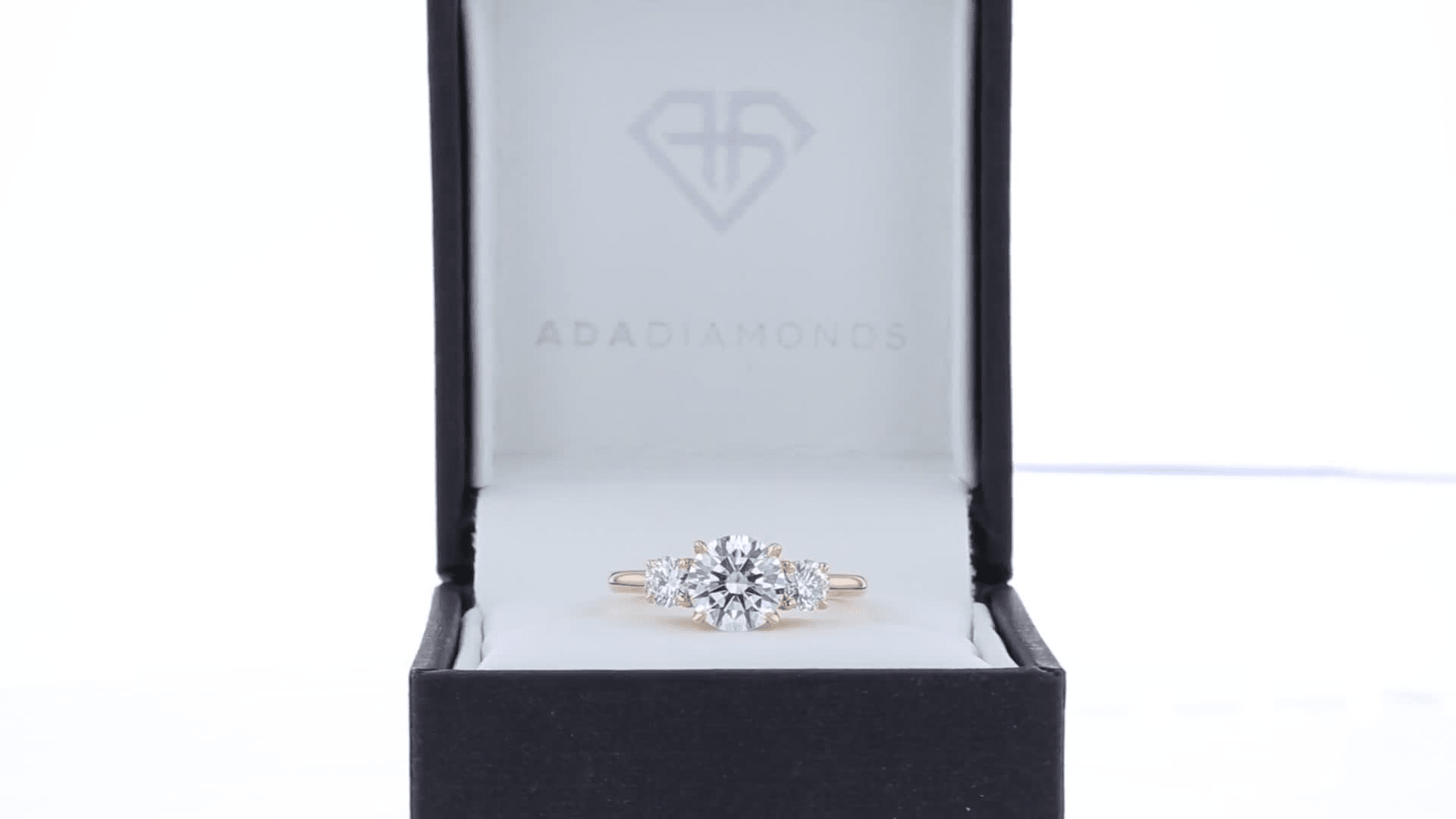 18k Rose Gold Three Stone Round Engagement Ring With Lab Grown Diamonds Ada Diamonds Design Number AD-070 Artistic Profile photo of ring