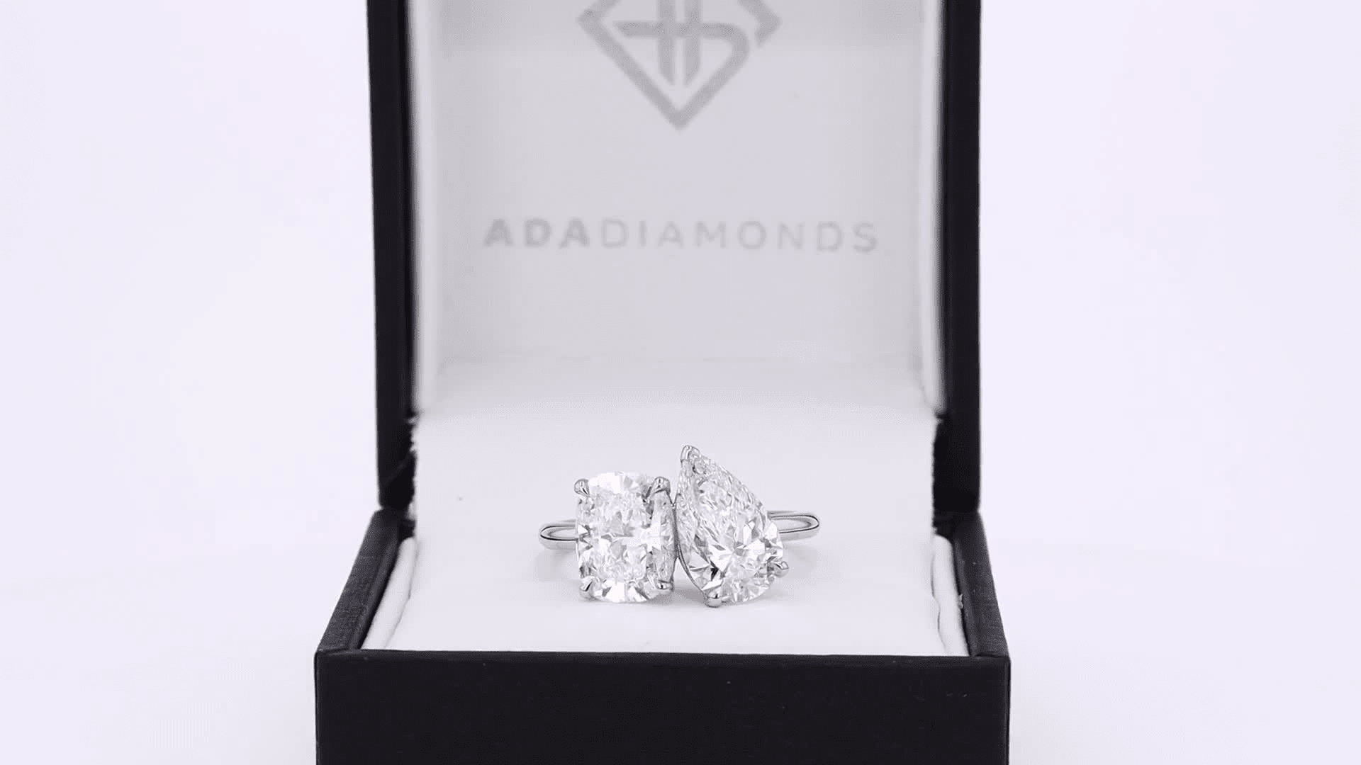 3ct cushion cut and pear toi et moi ring white gold ada diamonds design ad 363